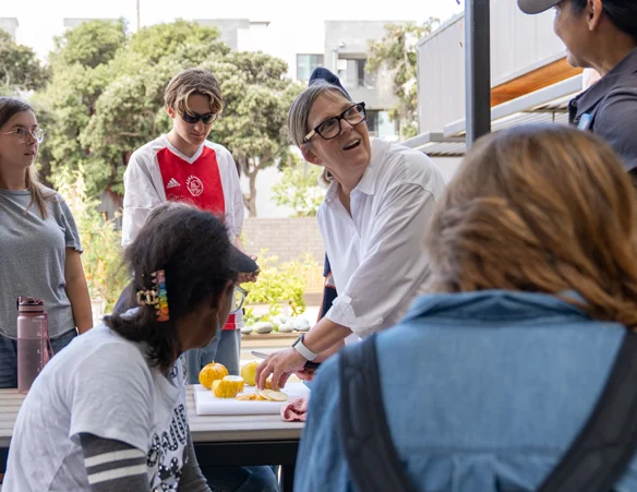 On our stunning 22-acre campus in the Santa Monica Mountains, MUSE Global School has over 100 raised garden beds constructed with reclaimed materials. Students choose the plant varieties they want to grow, then sow, tend, and harvest produce for the MUSE OMD Kitchen and MUSE’s community restaurant partners. Students from ECE – 12th grade work with our Head Chef in weekly plant-based cooking classes. Gardening opportunities range from one-on-one projects with the Seed-to-Table Director and MUSE’s Head Chef to group projects involving several students and members of the community.
